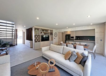 INTERIOR: CANTERA GALARZA EN PRIMERA ETAPA Y MARMOL TRAVERTINO FIORITO MATE
