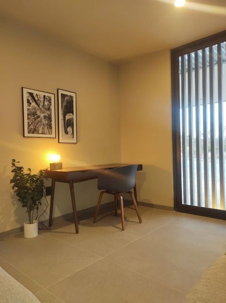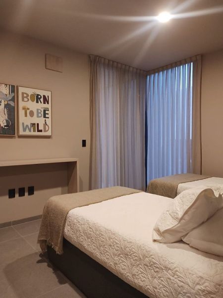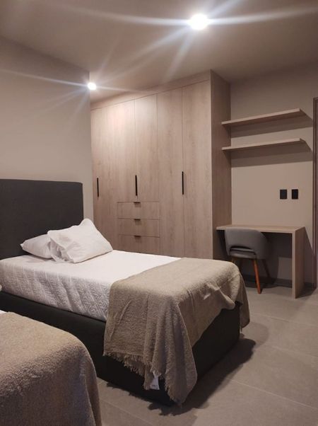 3 Recamaras, recámara principal con sala, vestidor y baño, 2 recámaras secundarias con vestidor, baño cada una y terrazas.