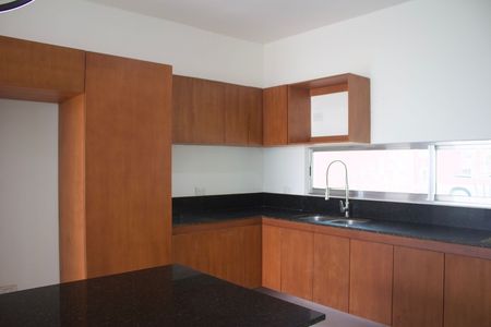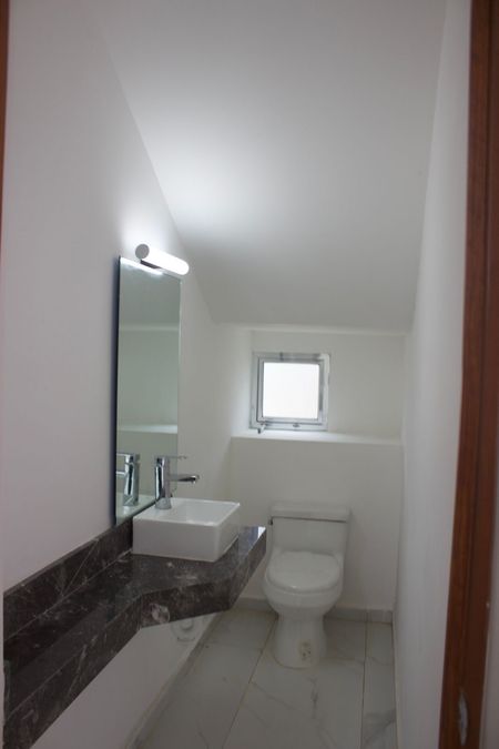 Mesetas de mármol Santo Tomás en baños y de granito ubatuba en cocina.
