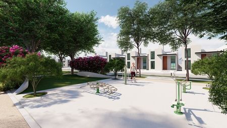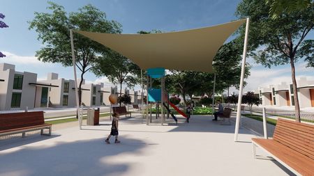 Este área residencial cuenta con parque central, gimnasio al aire libre, áreas verdes, juegos infantiles, pista de jogging, cancha de usos múltiples