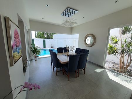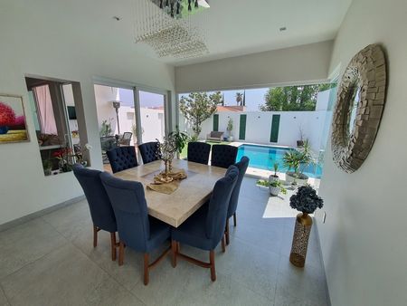 COMEDOR CON VISTA A LA ALBERCA Y SE INTEGRA CON LA COCINA AMPLIA CON ALACENA