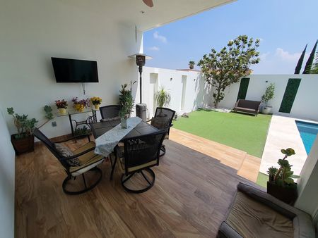 PATIO TRASERO DE BUEN TAMAÑO CON ALBERCA CLIMATIZADA