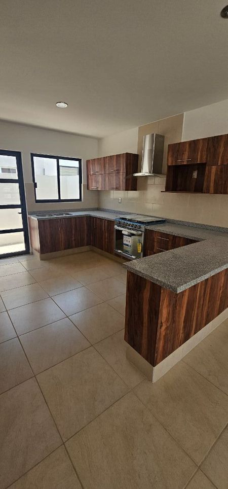 * Cocina con granito, doble tarja, cajones, despensa, espacio para refrigerador grande con toma de agua, barra para desayunar.