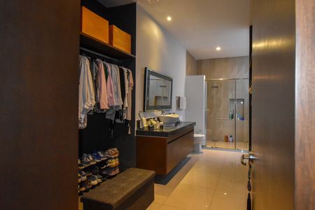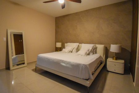Recámara principal con un baño y clóset vestidor