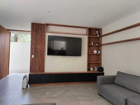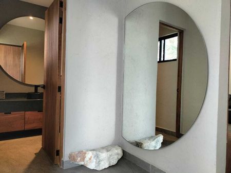 La planta alta alberga cuatro confortables recámaras, todas con vista al jardín y baño propio. La recámara principal destaca por su terraza privada rodeada de vegetación, creando un auténtico refugio natural. Además, cuenta con un estudio ideal para trabajar desde casa o como sala de lectura. Cada habitación tiene instalaciones para aire acondicionado; la principal y una recámara secundaria ya lo tienen instalado.