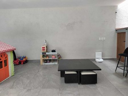 En planta baja, un versátil cuarto de juegos con baño completo ofrece la posibilidad de adaptarse como una quinta recámara, ideal para quienes requieren una habitación adicional en este nivel.