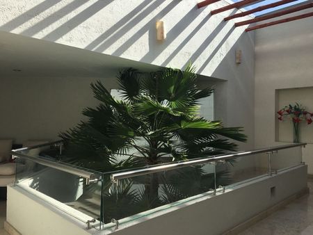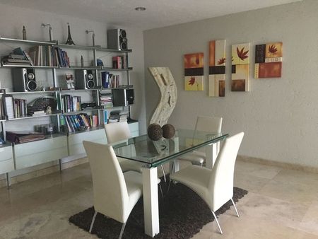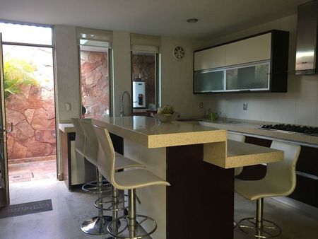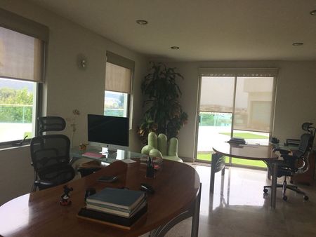 Cuenta con cinco recámaras, seis baños completos(incluyeel cuarto de servicio), tres medios baños, area para 2 oficinas ofrece comodo cine con butacas de cuero, salón bar, salón de juegos cin miderna m2sa de billar y 2 mesas de juegos, tres baños con hidromasaje, cuarto de servicio, bodega y área de lavado. Doble vidrio para aislar ruido y clima en los cuartos principales.