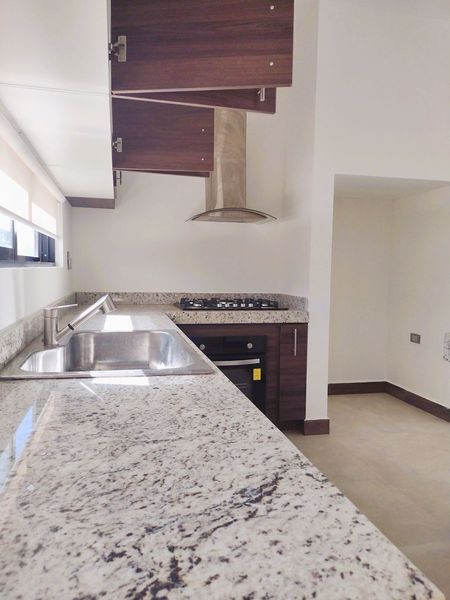 . Cocina con gavetería, parrilla, horno y campana.