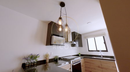 equipada, terraza, área de lavado y amplia alacena. En la planta alta, se encuentran tres recámaras con vestidor, la principal con baño completo y las secundarias compartiendo baño.