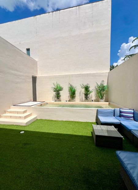 ● Recámara secundaria con baño y clóset ● Terraza con pasto Sintético para área de juegos.
