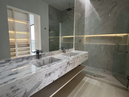 En planta baja disfrutarás de un espacio abierto con sala, comedor y cocina en mármol Santa María, pila de hornos y cerrajes de cierre lento, además de un estudio con baño completo ideal como oficina o recámara para visitas. La terraza es un lugar perfecto para relajarte y conectar con la naturaleza sin salir de casa.