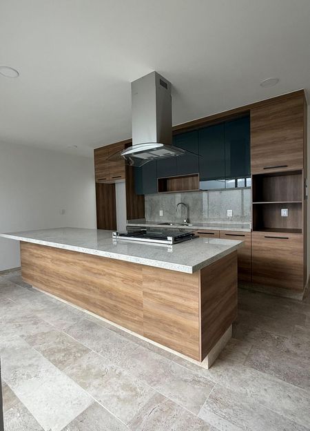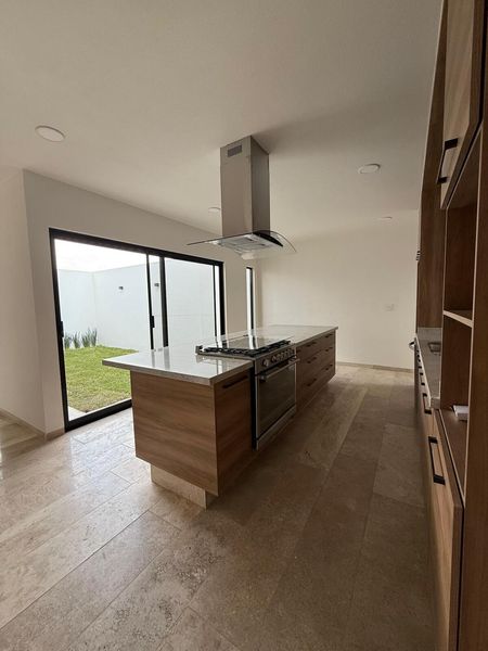 Planta baja: Entrada doble altura, 1/2 baño de visitas, cocina integral con granito y lavavajillas, sala-comedor, área de lavandería, cuarto de servicio, jardín con riego por aspersión, terraza y cochera para 2 autos.
