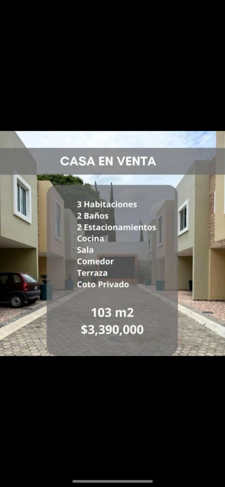 3 habitaciones 2 baños completos 2 estacionamientos cocina sala comedor terraza en coto privado.