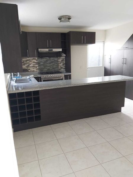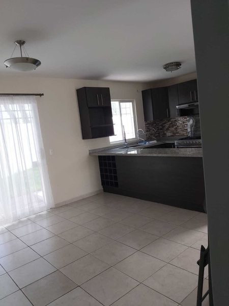 Cuenta con sala comedor con amplios espacios, cocina equipada, medio baño para visitas, patio y cochera techada para dos autos.
