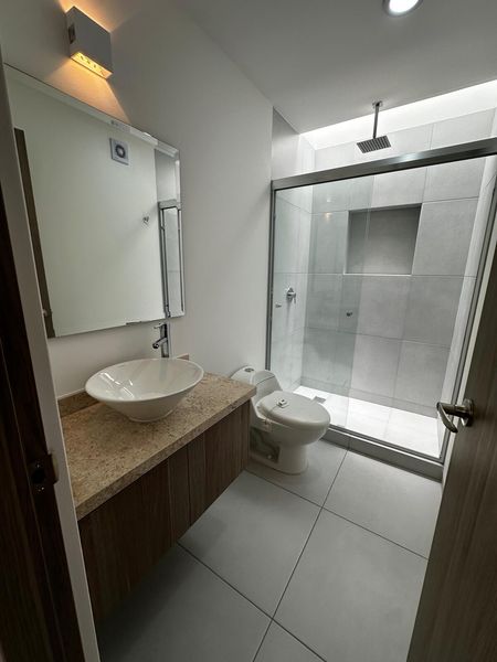 2 recámaras secundarias con clósets, baño completo compartido, recámara principal con vestidor y baño completo.