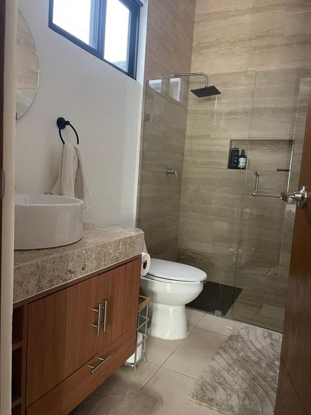 Jardín con sistema de riego, Boiler de gas Hidroneumático para presión de agua, Cochera techada para tres autos, Barandal de cristal en escalera, mosquiteros Piscina con acabado en chukum, iluminación y bomba sumergible