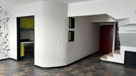 cochera para un auto, medio baño, sala-comedor, cocina equipada, área de lavado.