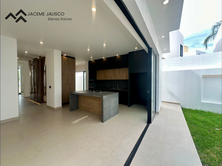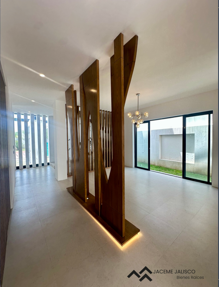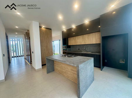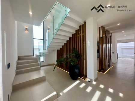 Planta baja: Hermoso recibidor, sala, comedor, cocina integral con isla cubierta de granito, recámara en planta baja con closet y baño completo, jardín posterior y lateral. Cochera para 4 autos.