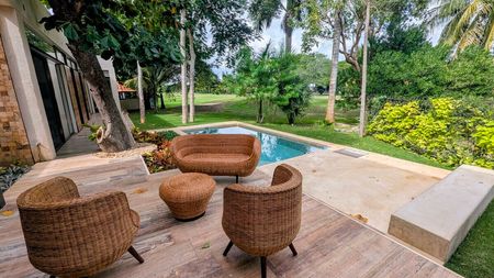 - Gran jardín posterior con vista directa al hoyo 5 del campo de golf