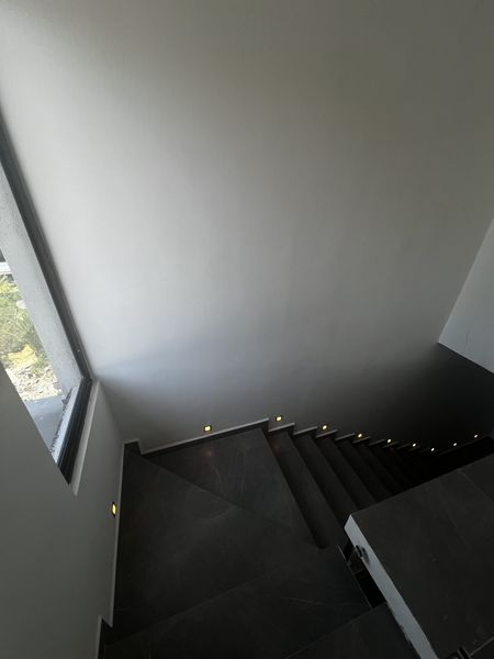 • Escalera con barandales de cristal templado