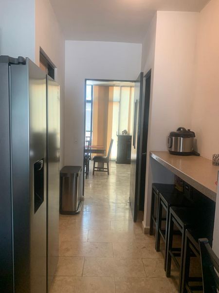 Cuenta con: recibidor, sala-comedor, cocina integral, medio baño de visitas, lavandería y cuarto de servicio y un amplio patio que se conecta a el área social.