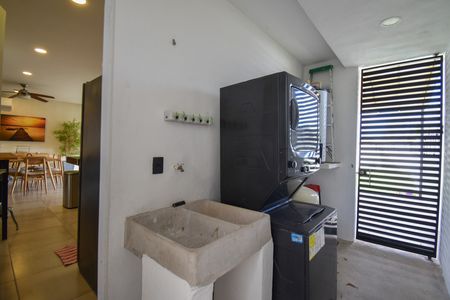 Área de lavado techada con lavadero, lava secadora y calentador de 59 L.