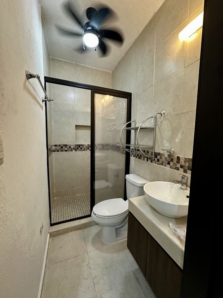 - 3 baños completos totalmente vestidos con canceles ventiladores con luz, lámpara, mueble lavabo y estante