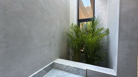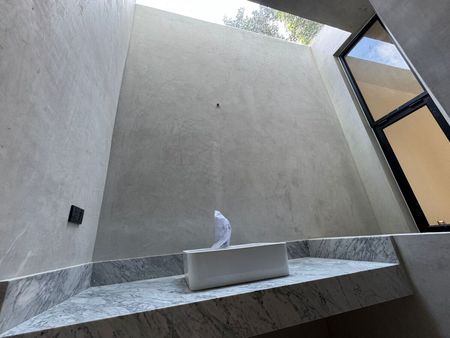 Esta propiedad se caracteriza por contar con una distribución peculiar, con el área de terraza y piscina en el medio de la casa.