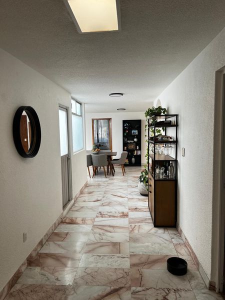 En la zona íntima un hall distribuidor brinda amplio acceso a tres encantadoras recámaras, con dos baños, cada una de ellas de buena capacidad de guardado en sus clósets. Con salida a un patio en escuadra, que invita a ponerle macetas para tu florido jardín o huerto Hidropónico