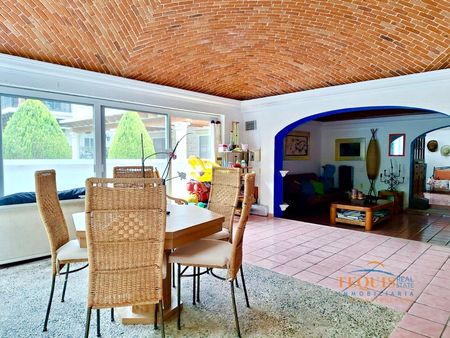 Completan la propiedad un hermoso jardín privado, cuarto de servicio independiente, bodegas de almacenamiento y estacionamiento para 3 autos.