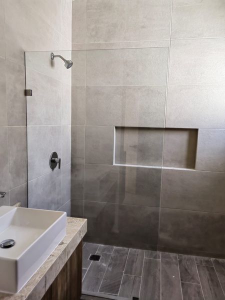 4 baños completos con cubiertas de mármol y vidrios templados.