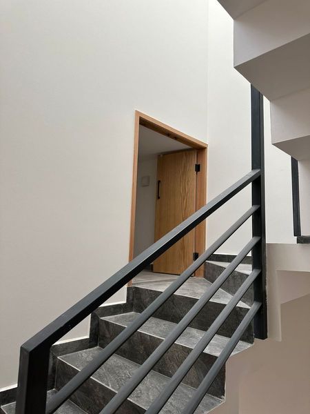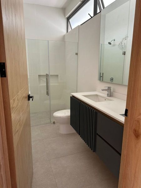 Planta baja estudio con baño completo, entrada independiente, sala-comedor, cocina con barra, jardín, planta alta, 3 recámaras con baño cada una y vestidor en principal, closet de blancos, área de lavado, roof garden con baño completo y estacionamiento para 2 autos.