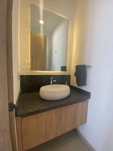 Recámara Principal con clóset, vestidor y baño completo, doble lavabo.