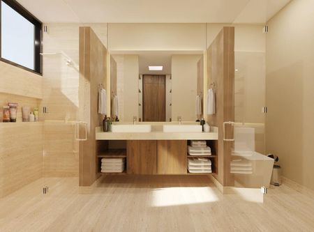 Baños: Incluye cancelería de baños cuarto principal - puerta templada cuartos secundarios - fijos templados.