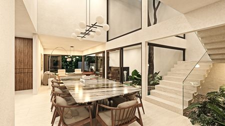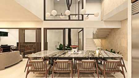 - Sala I Comedor a doble altura con vista a la alberca.