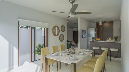 Ubicada en el norte de la ciudad, en la exclusiva zona de Conkal, esta propiedad está lista para entregarse de inmediato.