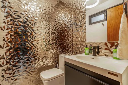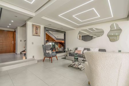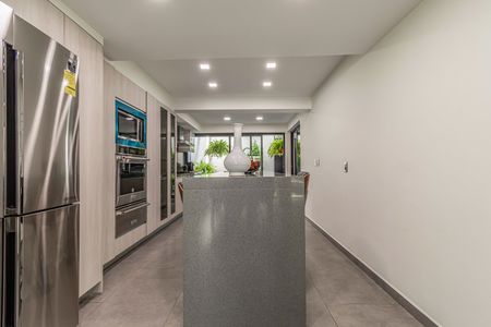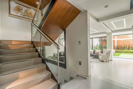 - Planta Baja: Exclusa-pórtico de acceso, patio frontal con espacio y preparación para elevador, cochera para dos autos grandes, solarium a triple altura, vestibulo de acceso, medio baño, escalera, bar de madera, sala, comedor, cocina de gran formato con barra de cuarzo y aparatos de alta gama y jardin posterior.