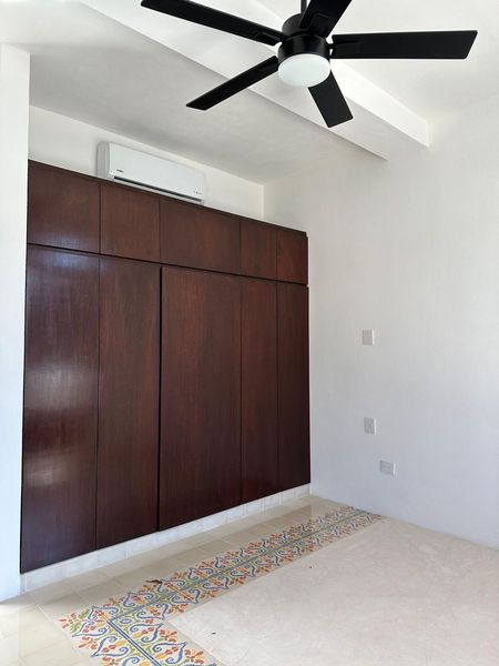 Fachada restaurada en color verde. Ventiladores en habitaciones y terraza. Aires acondicionados en habitaciones.