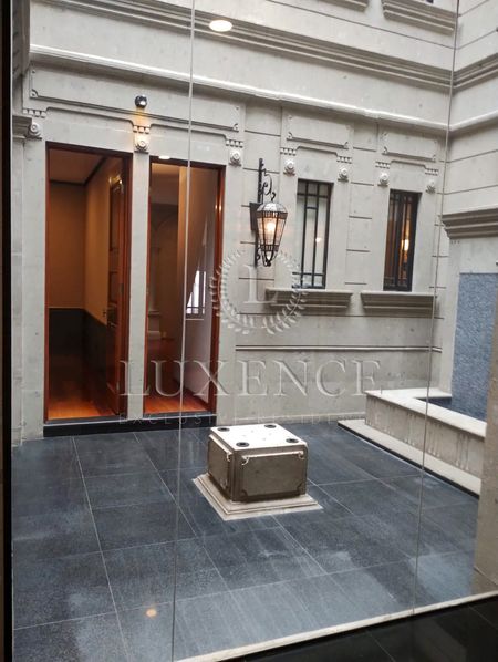 Baños: Revestidos con mármol en pisos y muros, equipados con vidrios templados y accesorios en bronce.