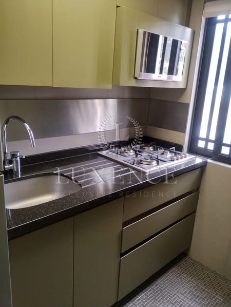 Cocina equipada con estufa de inducción, horno salamandra, lavavajillas y refrigerador.