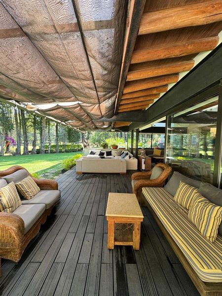 Ademas, sala/recepción; tv/oficina, gran sala de visitas, y la que más se usa y se antoja estar: Sala/terraza techada de cristal con impactante vista al campo, con variedad de tonos de verde todo el año y ver pasar golfistas a cierta distancia sólo sábados y domingos.