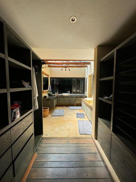 5 recamaras con baño, una enorme con 6 camas/literas y gran chimenea, la principal esta en la PB para máxima comodidad en su caso,de personas mayores, con baño enorme con 2 lavabos separados para la pareja y baño con vapor y regadera de tipo club de presión y terraza privada con