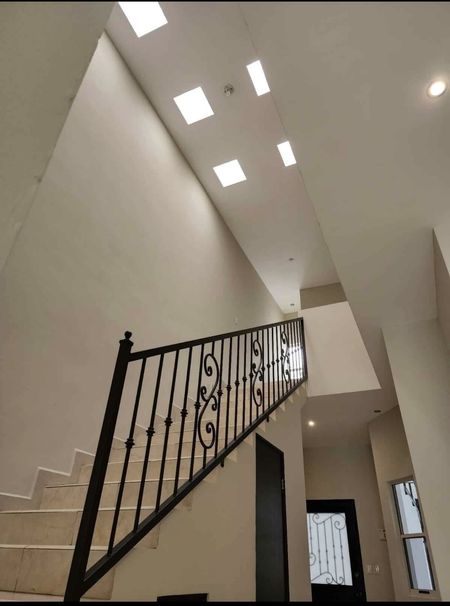 Segunda planta: escalera doble altura con tragaluces, estancia amplia, área de servicio de limpieza, 3 recamaras muy amplias, todas cuentan con baño completo, clocet y clima.