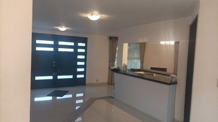 Sala con bar, comedor, cocina integral con desayunador, área de lavado techada con piso, bodega, BAÑO COMPLETO, OFICINA O RECAMARA , estacionamiento 2 autos techados y dos sin techar., jardin delantero, patio atras amplio con piso y protección, bodega a un costado de la casa por fuera y pasillos independientes a los lados de la casa.