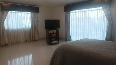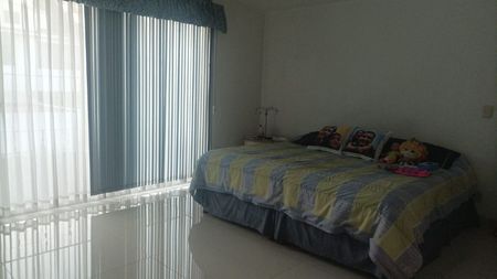 Recamara principal con baño y vestidor, área de TV, dos recamaras con closet y baño completo.