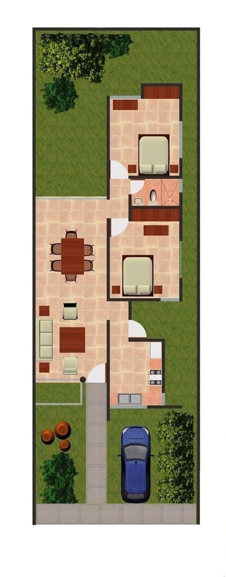 Cada casa consta de dos amplias habitaciones y un baño. El diseño de sala-comedor corrido brinda una sensación de amplitud y conectividad, con vistas al área social y al patio a través de una puerta corrediza. La amplitud del patio permite la instalación de una alberca o crear un espacio social ideal para eventos y reuniones con familia o amigos.