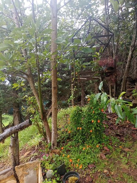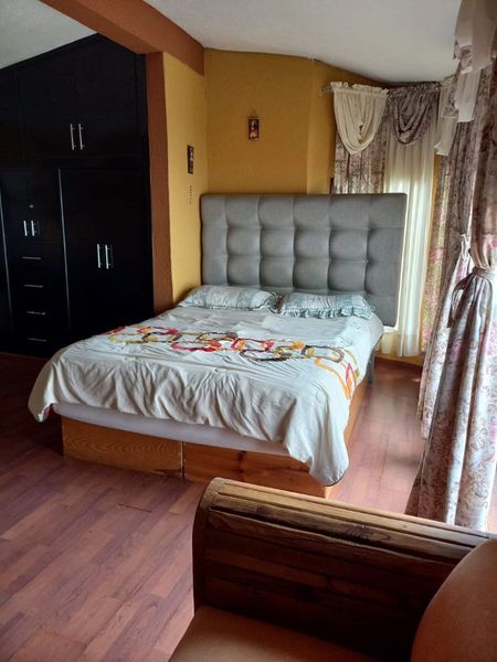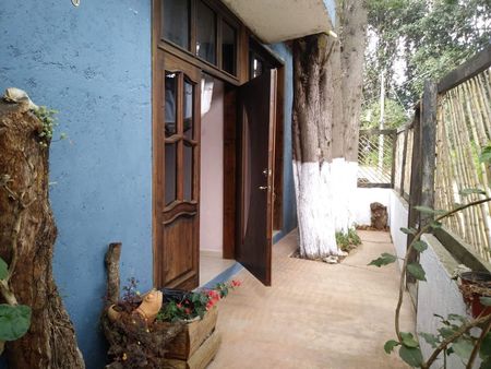 CASA CAMPESTRE RODEADA POR JARDINES CON PINOS, CETOS, BROMELIAS, BAMBU, CON TERRENO EN DESNIVEL, CON TRES DEPARTAMENTOS PARA RENTAR, CISTERNA, HERMOSA VISTA, ESTACIONAMIENTO PARA CUATRO AUTOS, ZONA TRANQUILA Y SEGURA,