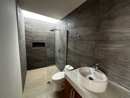 Planta alta: 3 recámaras con baño, losa a doble altura, incluye closets y la recámara principal con vestidor.
