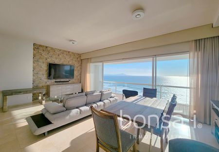 Exclusive fully furnished and equipped apartment. The ocean view is spectacular, providing the perfect setting to enjoy beautiful sunsets on your fabulous balcony. It has a small entrance hall, living room, dining room, kitchen with a large bar and granite countertops. Two spacious bedrooms with walk-in closets and full bathrooms. Indoor laundry area and half bathroom for guests, underground parking for 2 cars. Amenities include an impressive heated pool, jacuzzi, gym, spa, event room, and beautiful gardens, all with ocean views. Controlled access with 24/7 security guards and video cameras.