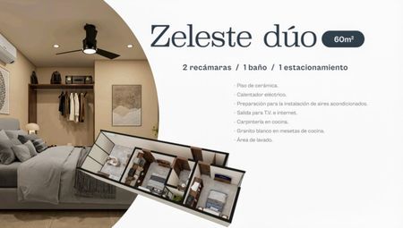 ZELESTA es un desarrollo de 18 departamentos ubicado en Dzityá, Mérida, a tan solo 40 metros de la avenida principal, Períferico, cerca de las Américas, colegio Montreal, restaurantes , plazas comerciales y con fácil acceso a la carretera Mérida-Progreso.